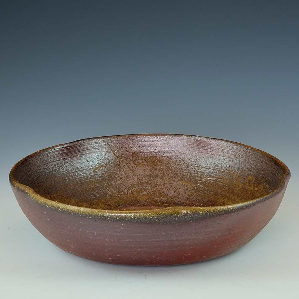 桜鉢(中)。木村瑞穂によってろくろで作られ、作品の底には作家のサインが入っています。登り窯で赤松の割り木だけを使い、約2週間焼き締められました。釉薬は全く使われておらず、土と炎から生み出される自然の色をお楽しみください。鉢: 直径17cm, 高さ約5cm, 電子レンジ・食器洗浄機対応備前焼は一点一点手作りのため、焼けや風合いが異なることが多少ございます。どうぞご了承ください。