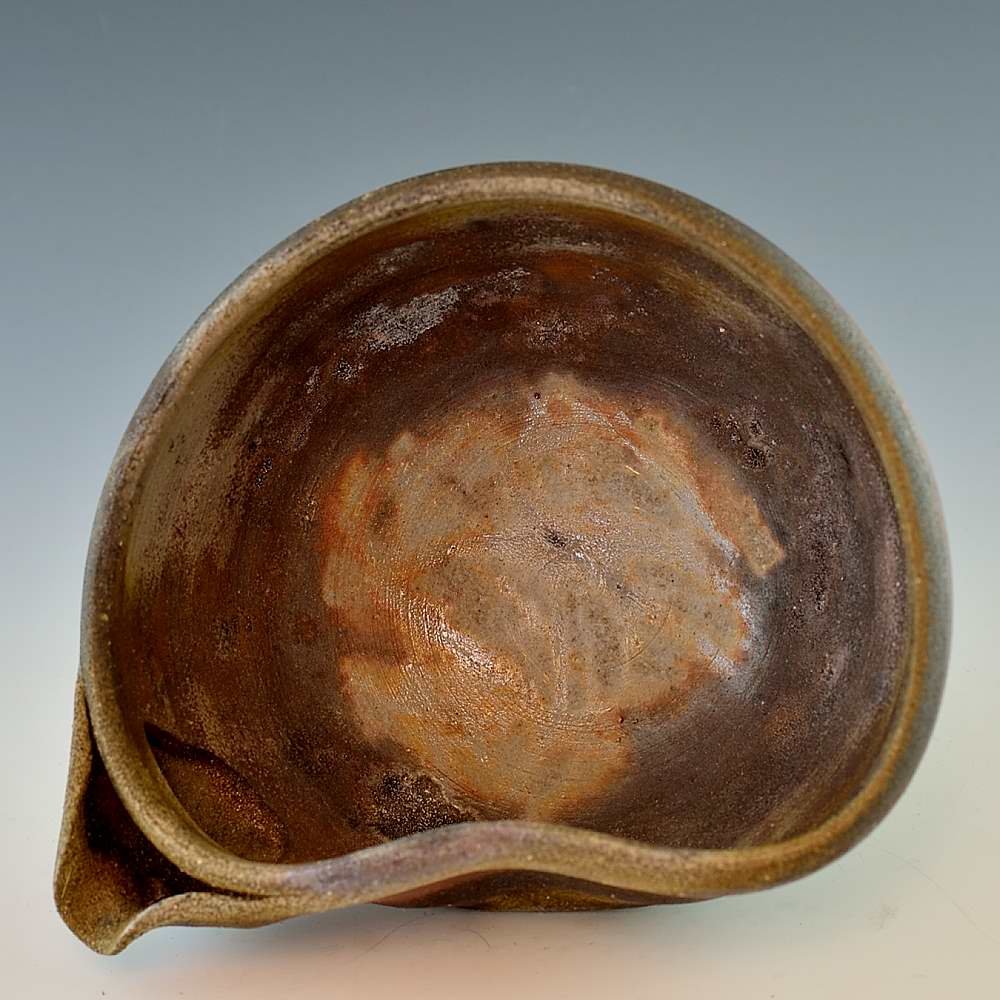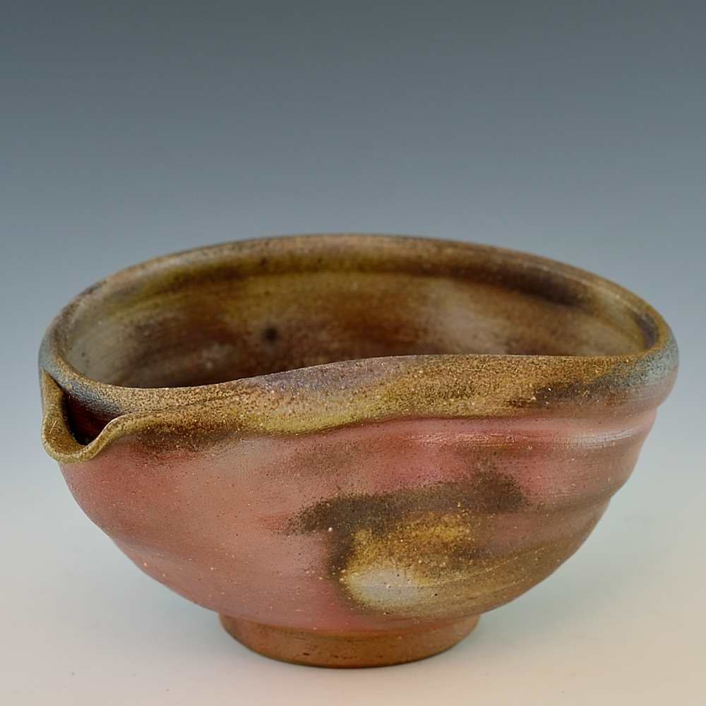 片口(小)。木村微風によってろくろで作られ、作品の底には作家のサインが入っています。登り窯で赤松の割り木だけを使い、約2週間焼き締められました。釉薬は全く使われておらず、土と炎から生み出される自然の色をお楽しみください。 徳利: 直径14cm, 高さ8cm, 電子レンジ・食器洗浄機対応 備前焼は一点一点手作りのため、焼けや風合いが異なることが多少ございます。どうぞご了承ください。