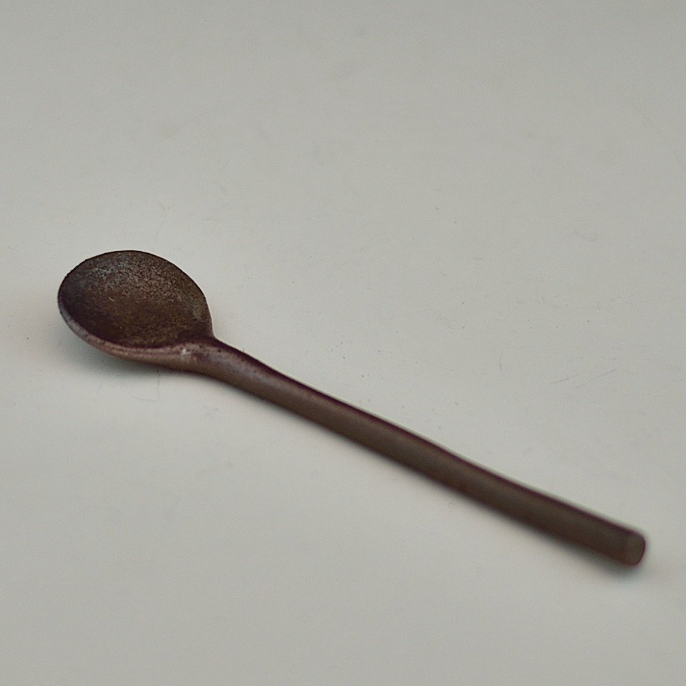 スプーン。木村微風によって手びねりで作られ、作品の底には作家のサインが入っています。登り窯で赤松の割り木だけを使い、約2週間焼き締められました。釉薬は全く使われておらず、土と炎から生み出される自然の色をお楽しみください。 スプーン: 幅約11cm, 電子レンジ・食器洗浄機対応 備前焼は一点一点手作りのため、焼けや風合いが異なることが多少ございます。どうぞご了承ください。