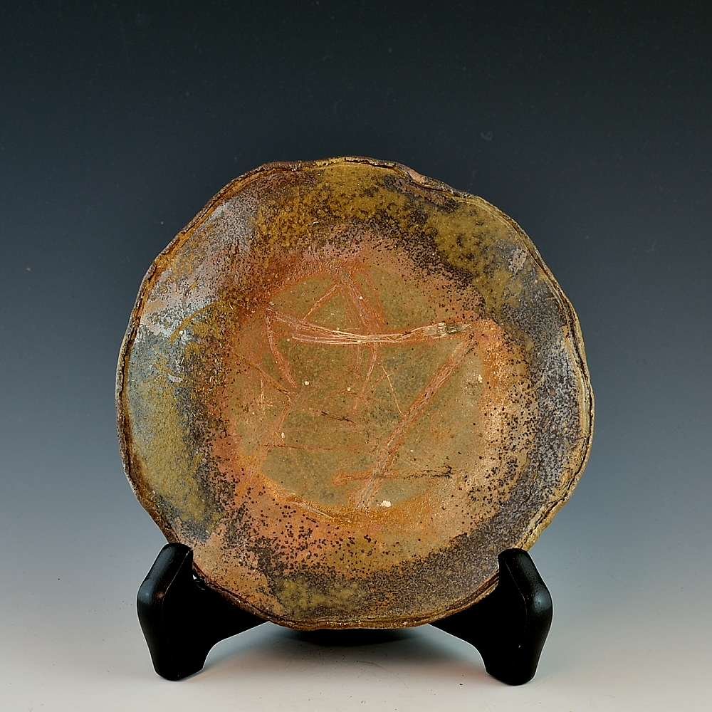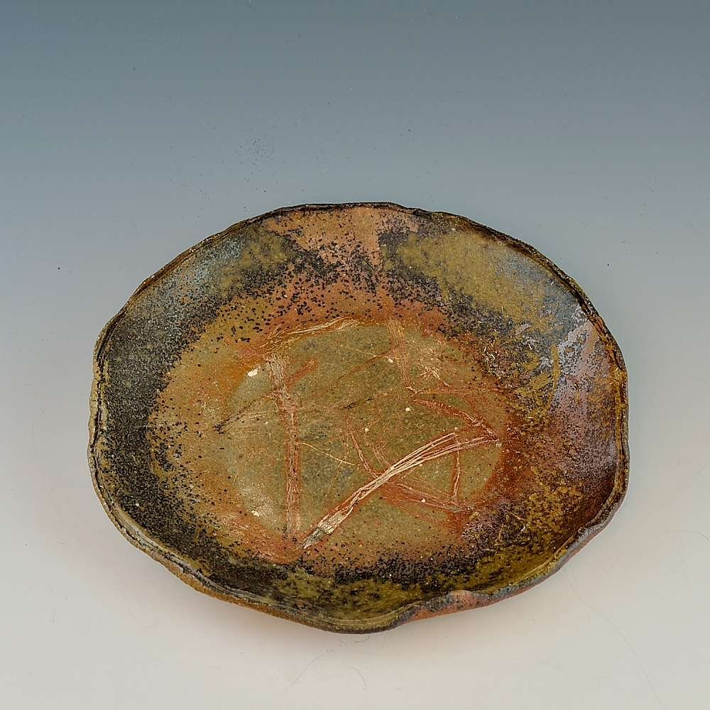 石目丸皿(小)。木村微風によって手びねりで作られ、作品の底には作家のサインが入っています。登り窯で赤松の割り木だけを使い、約2週間焼き締められました。釉薬は全く使われておらず、土と炎から生み出される自然の色をお楽しみください。 皿: 直径16cm, 高さ2cm, 電子レンジ・食器洗浄機対応 備前焼は一点一点手作りのため、焼けや風合いが異なることが多少ございます。どうぞご了承ください。