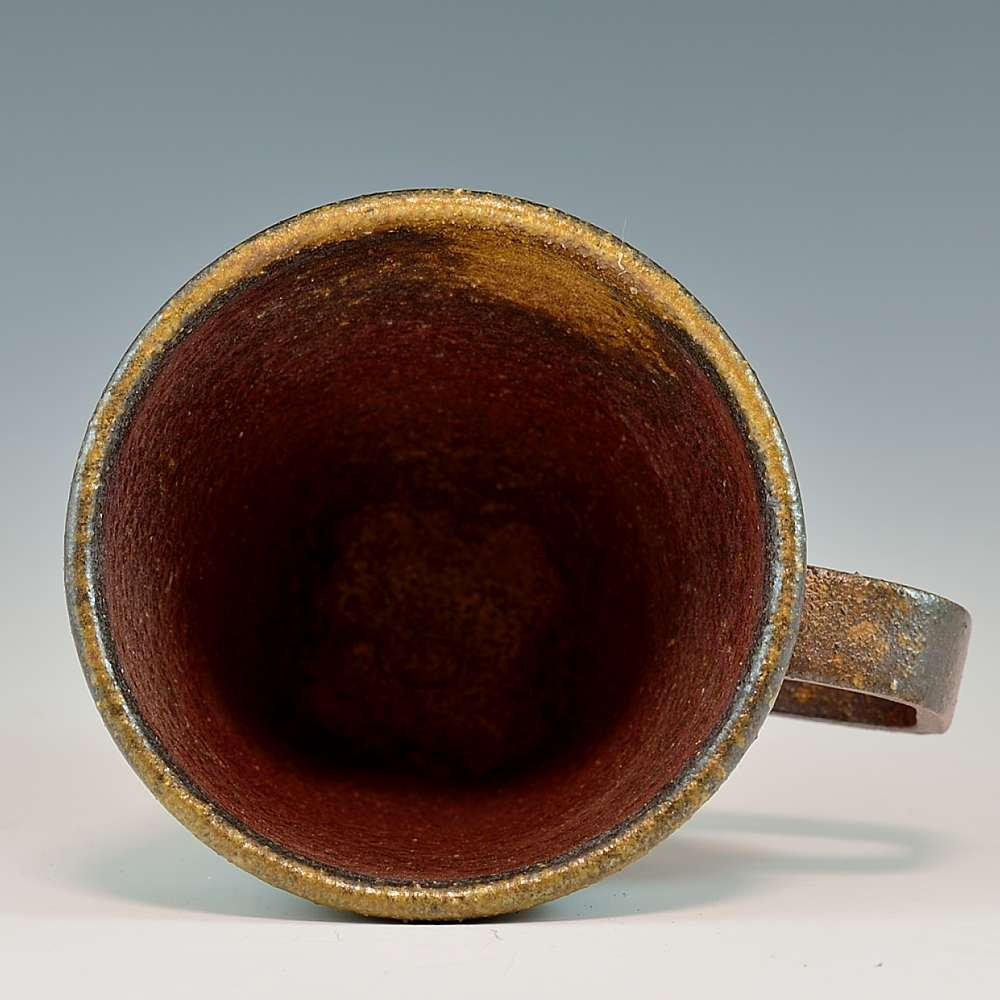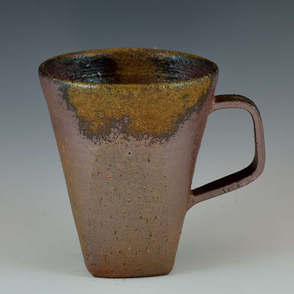 テーパードコーヒーマグカップ。木村庸祐によってろくろで作られ、作品の底には作家のサインが入っています。登り窯で赤松の割り木だけを使い、約2週間焼き締められました。釉薬は全く使われておらず、土と炎から生み出される自然の色をお楽しみください。カップ: 幅約11cm, 直径9cm, 高さ約10cm, 電子レンジ・食器洗浄機対応備前焼は一点一点手作りのため、焼けや風合いが異なることが多少ございます。どうぞご了承ください。