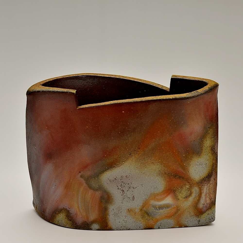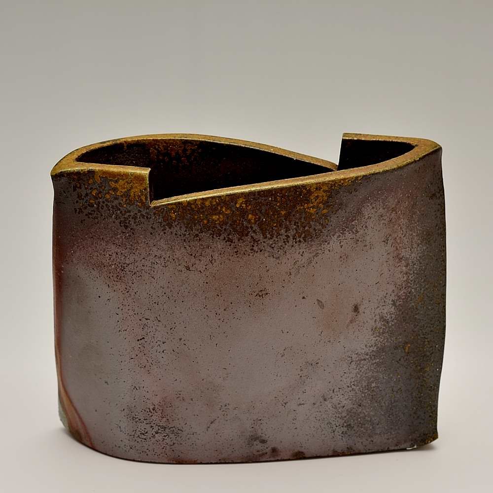 波型花入。木村微風によって手びねりで作られ、作品の底には作家のサインが入っています。登り窯で赤松の割り木だけを使い、約2週間焼き締められました。釉薬は全く使われておらず、土と炎から生み出される自然の色をお楽しみください。 花器: 幅約20cm, 奥行約8cm, 高さ約16cm, 備前焼は一点一点手作りのため、焼けや風合いが異なることが多少ございます。どうぞご了承ください。
